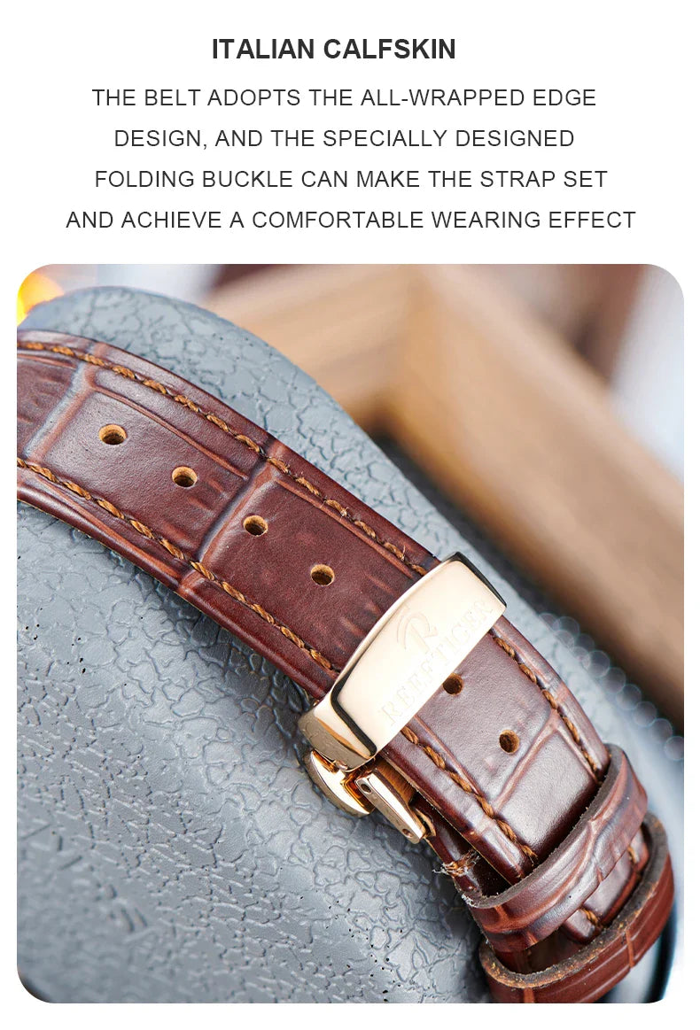 Experience refined craftsmanship with the Reef Tiger RGA1988 – a sophisticated moonphase automatic watch designed for the modern gentleman. Crafted with a stainless steel case and a rich leather strap, this timepiece strikes the perfect balance between luxury and functionality.
