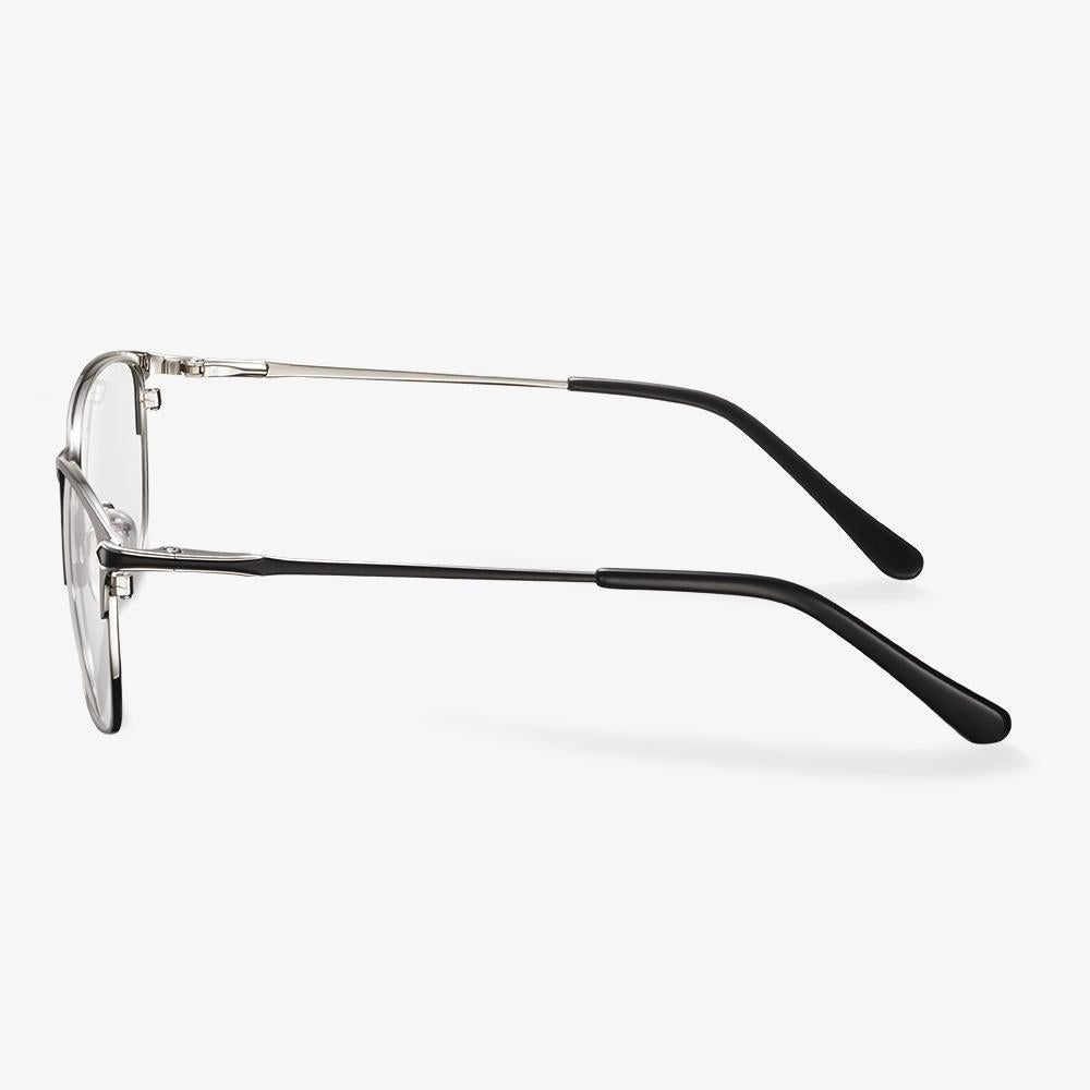 The horn-rimmed glasses frames are the glasses most people like to wear daily. And Beacher, innovative rectangular glasses frame with horn-rimmed style for you to create a simple business casual style. The corners of the frame and the temples are decorated with metal elements, which form a perfect contrast with the dark frame. This is a versatile and low-key glasses that can help you easily change your style from the office to the bar.