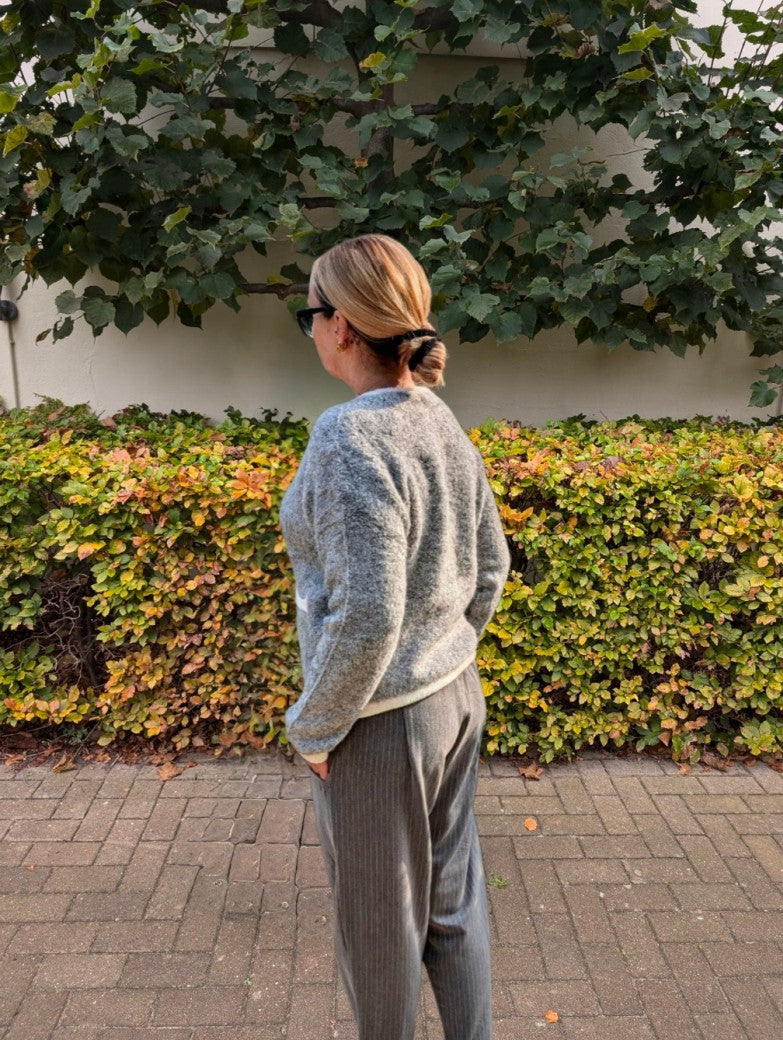 Unsere exquisite Cardigan Chanel Style Strickjacke Bouclé, präsentiert in der stilvollen Farbnuance Grau Beige, besticht durch ihre zeitlose Anmut. Die goldfarbenen Knöpfe setzen einen glamourösen Akzent und verleihen dieser Strickjacke einen Hauch von Luxus und Eleganz, der jedes Outfit aufwertet.
