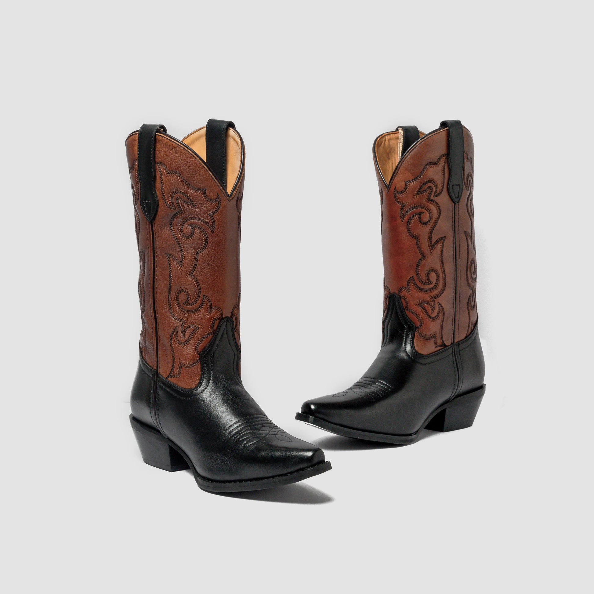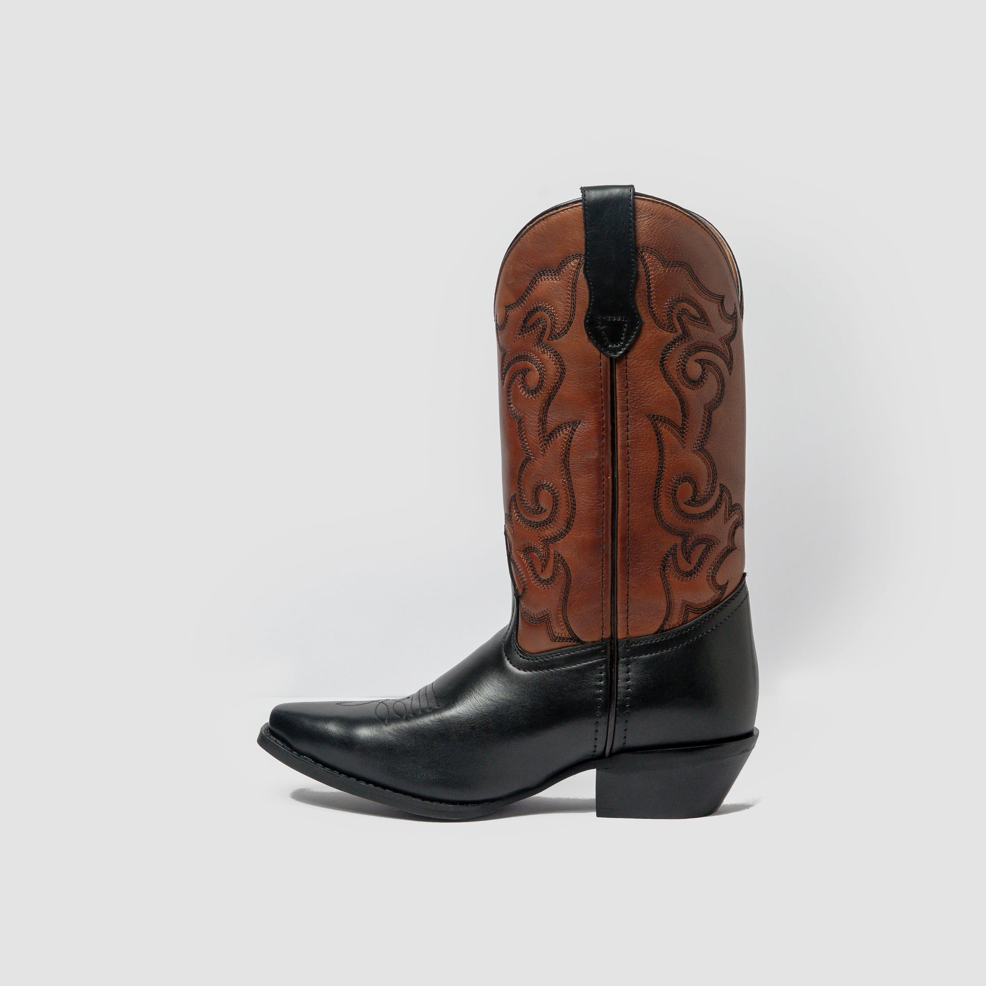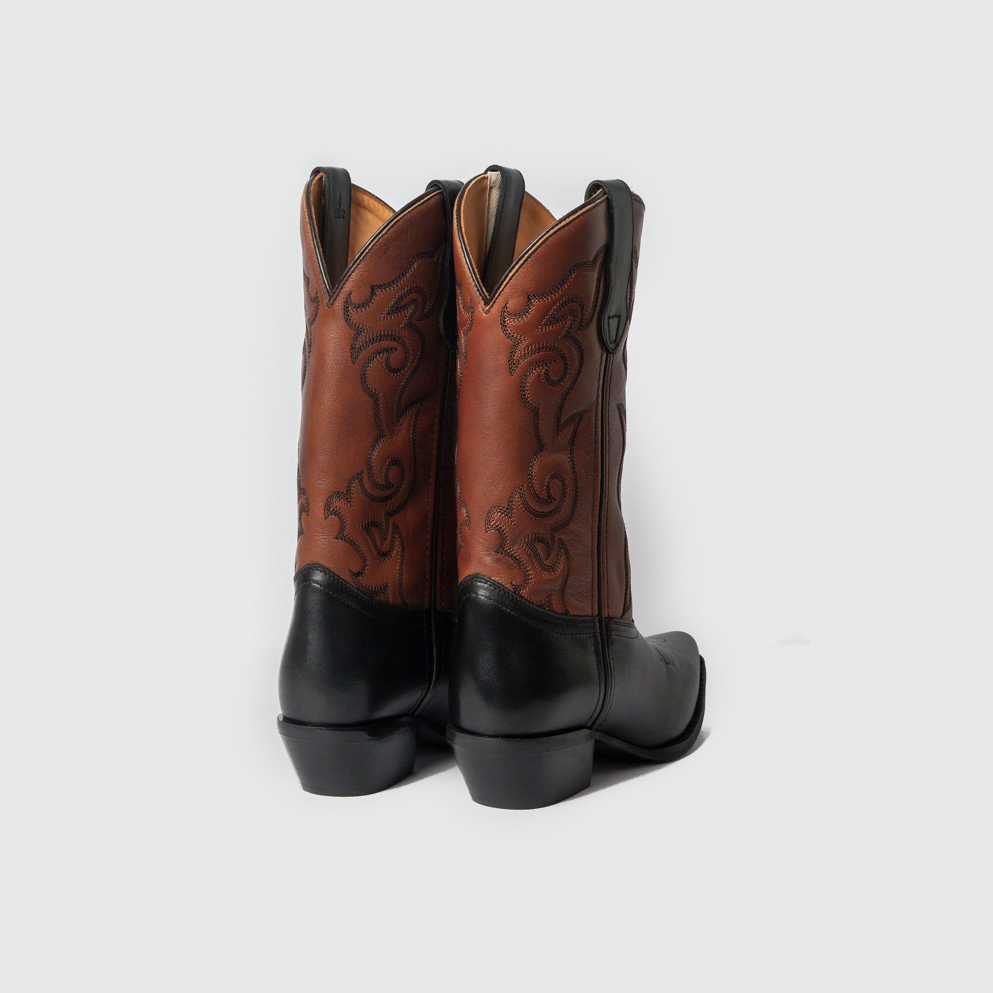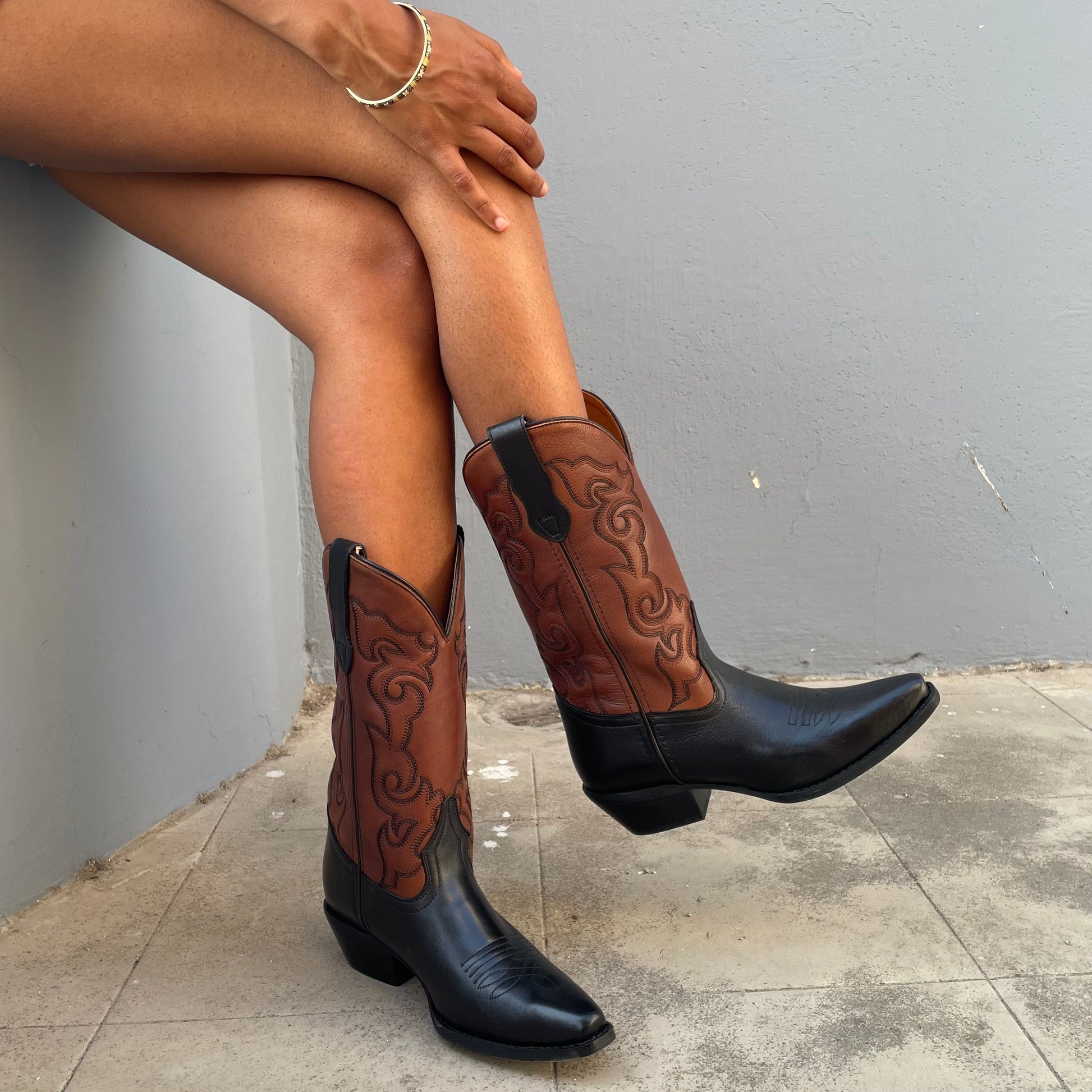 Two tones, two friends. A mix of black and brown with intricate stitching—a boot about balance, contrast, and connection—just like the best friendships.