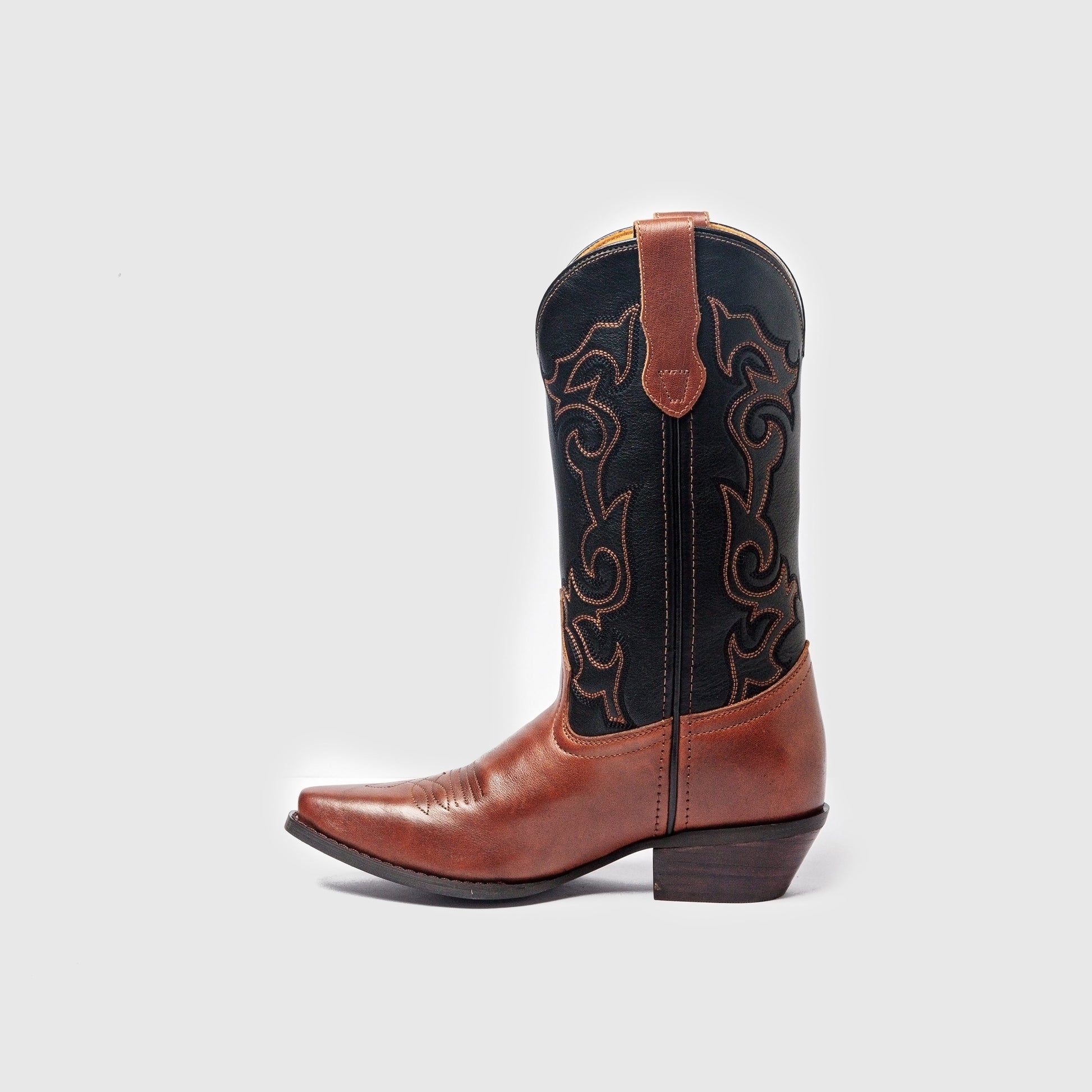 Two tones, two friends. A mix of black and brown with intricate stitching—a boot about balance, contrast, and connection—just like the best friendships.