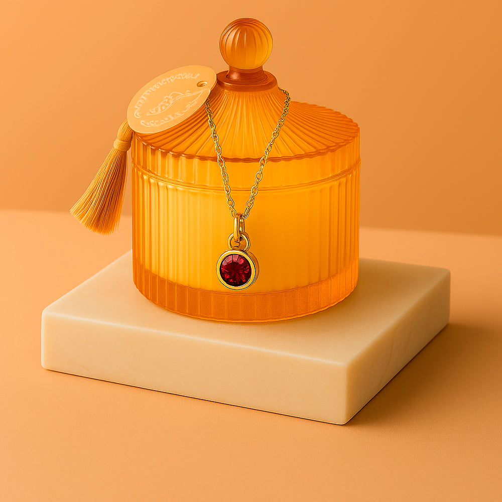 Edle Schmuckkerze mit Geburtsstein - Duftkerze mit Anhänger und Kette aus 925er Silber, vergoldet