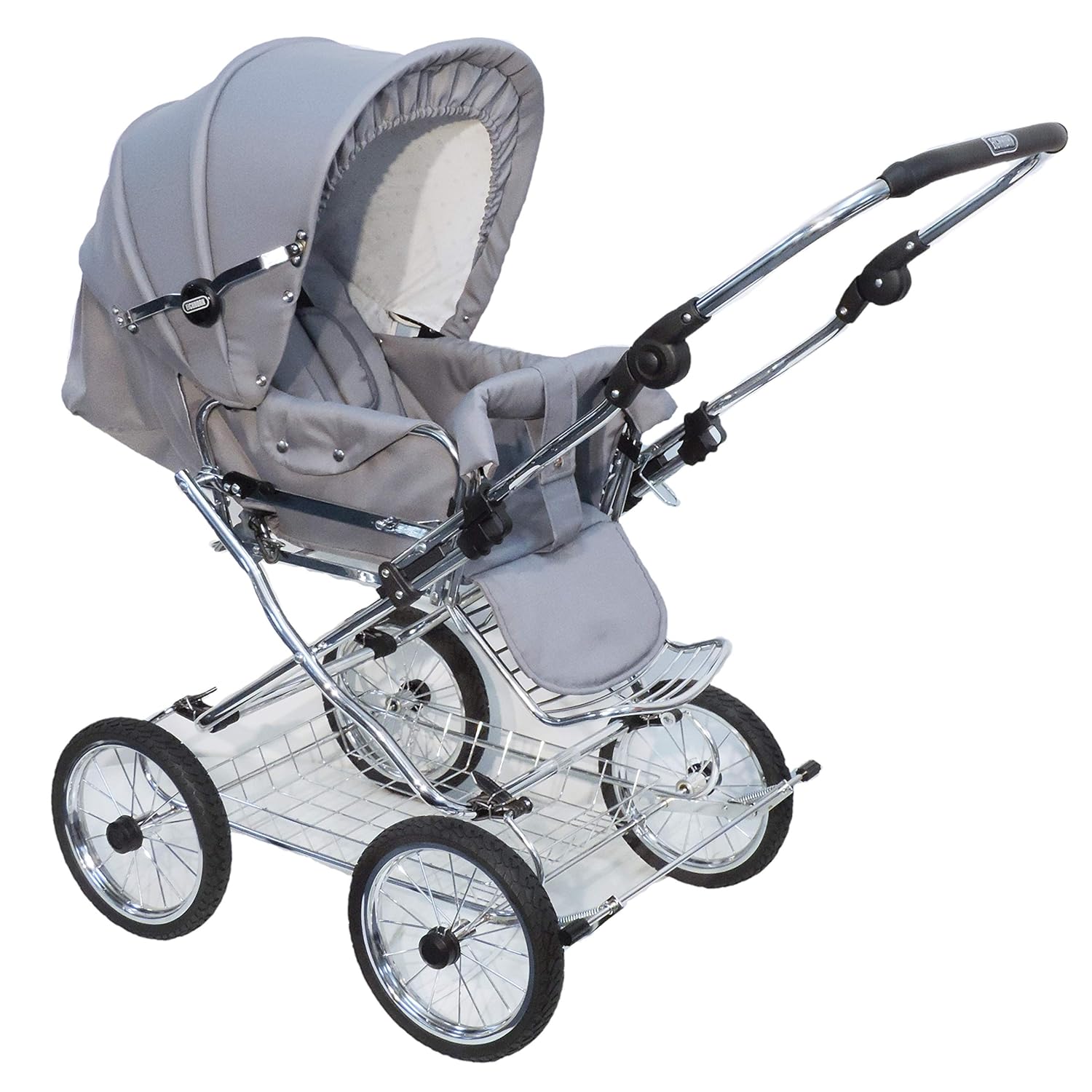 Der Kinderwagen ist in einem eleganten Grau gehalten und wird mit einer praktischen Babytragetasche geliefert, die für zusätzlichen Komfort und Sicherheit sorgt. Das hochwertige Material und die ECCO-Räder garantieren eine hohe Langlebigkeit und hervorragende Fahreigenschaften, sodass Sie auch auf unebenen Untergründen problemlos unterwegs sind.