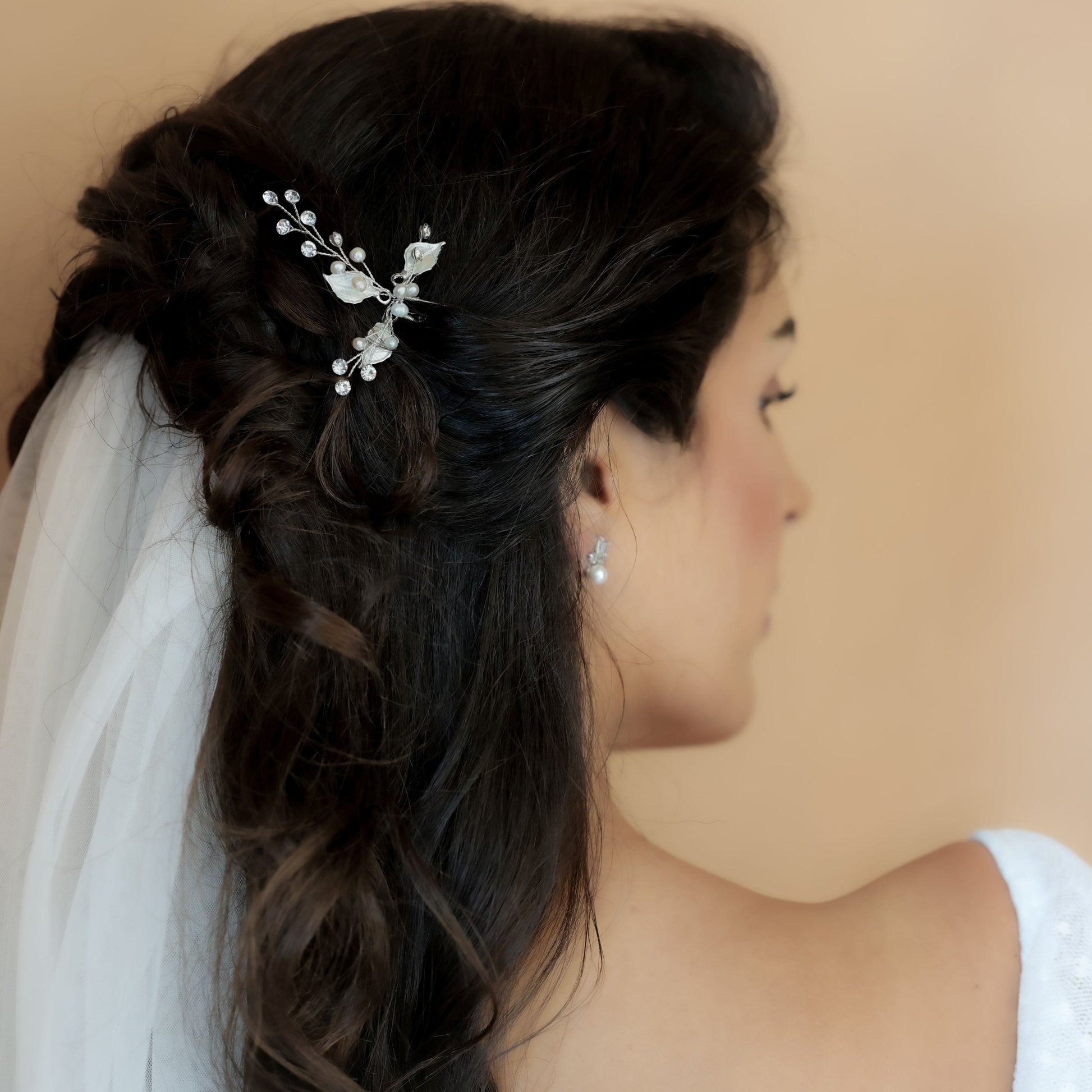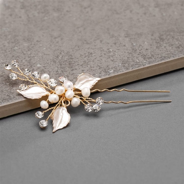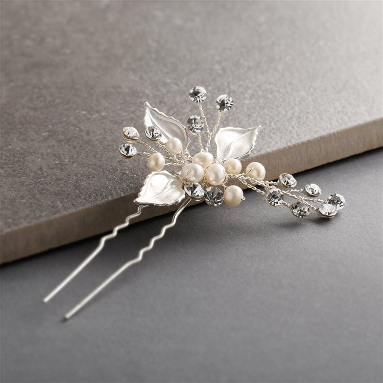 Bezaubernde Brauthaarnadel mit handbemalten silbernen oder goldenen Blättern, Süßwasserperlen und Kristallsteinchen. Verleihe deiner Hochzeitsfrisur dezenten Glamour mit diesem wunderschönen handgefertigten Haaraccessoire. Trage eines unserer Bestseller entweder einzeln oder zu mehreren gruppiert.