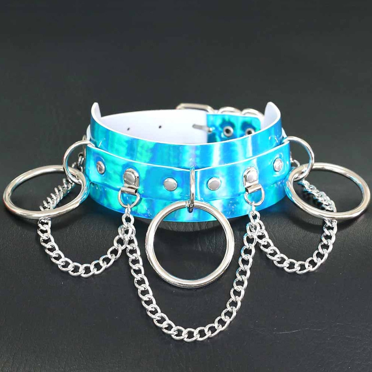 Make a bold statement with the Holographic Chain Necklace. Its shimmering, reflective surface catches the light from every angle, adding an edgy, futuristic vibe to any outfit. Perfect for those who dare to stand out, this choker combines modern style with a striking holographic finish that demands attention. Elevate your look with this fearless accessory.