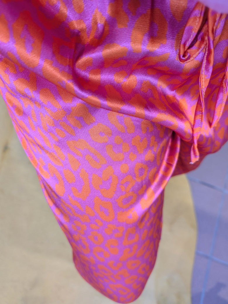 Hose aus Satin Viskose mit Leo Muster in Lila Orange One Size 02906