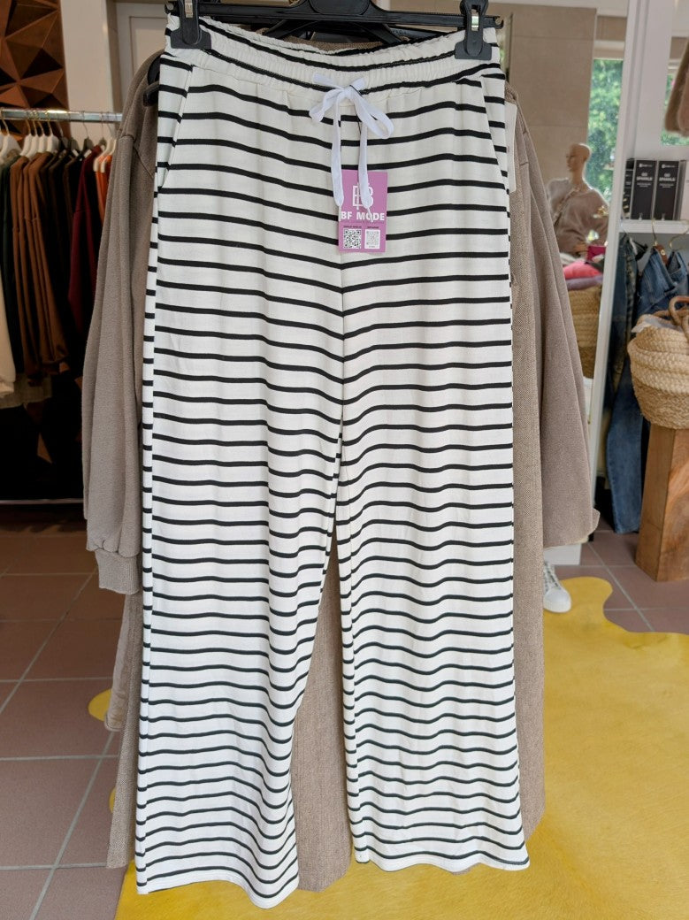 Hose Pants Jogginghose Viskose gestreift Créme Schwarz - One Size 24085