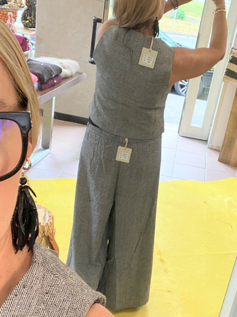 Hose Tweed Look Marlene Pants Wide Leg Hellgrau Grau S/M M/L - von GIOYA MD7371