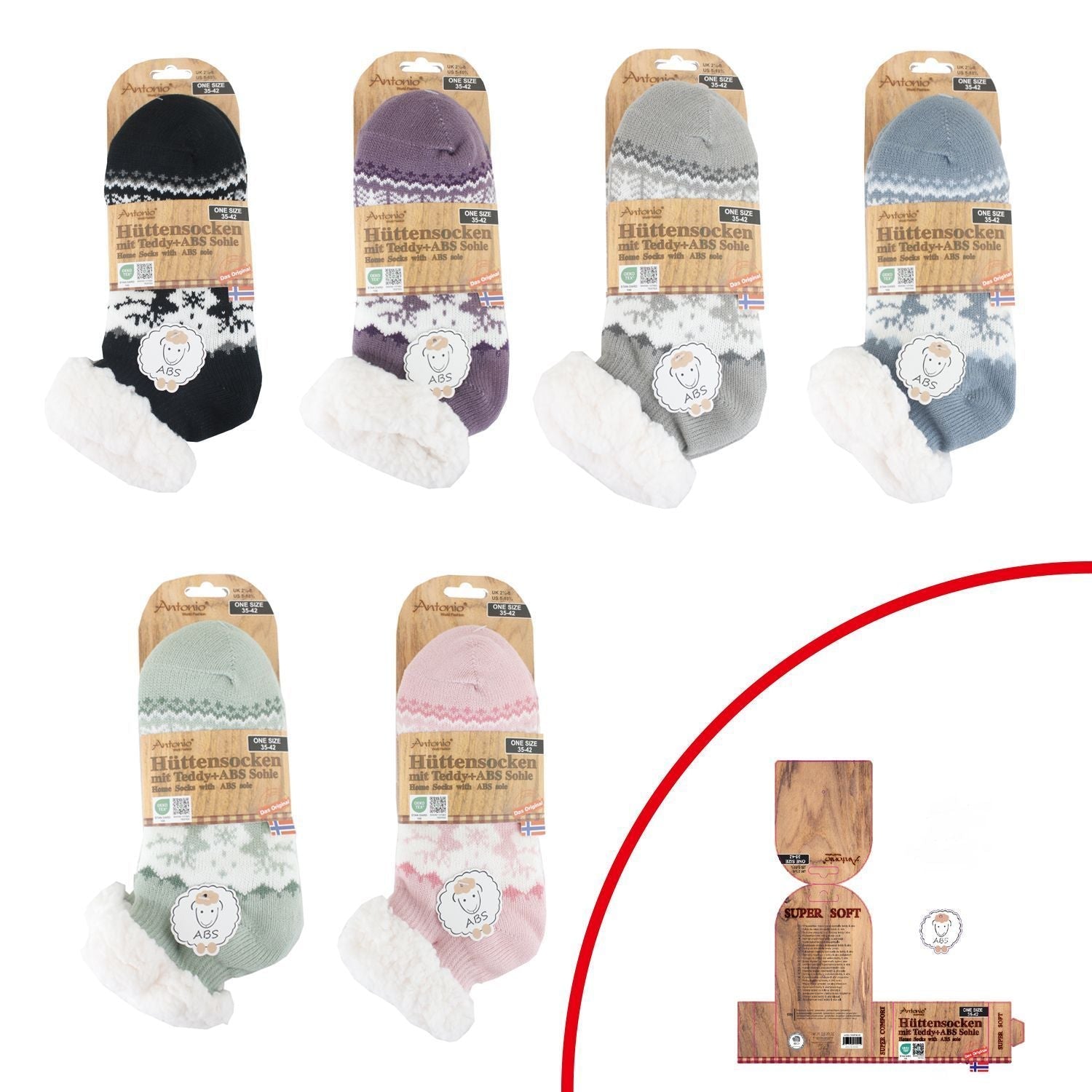 Hüttensocken für Damen » Kuschelsocken » Socken mit Teddy und ABS Sohle » 3/4 Länge | Wintersocken in Einheitsgröße 35-42