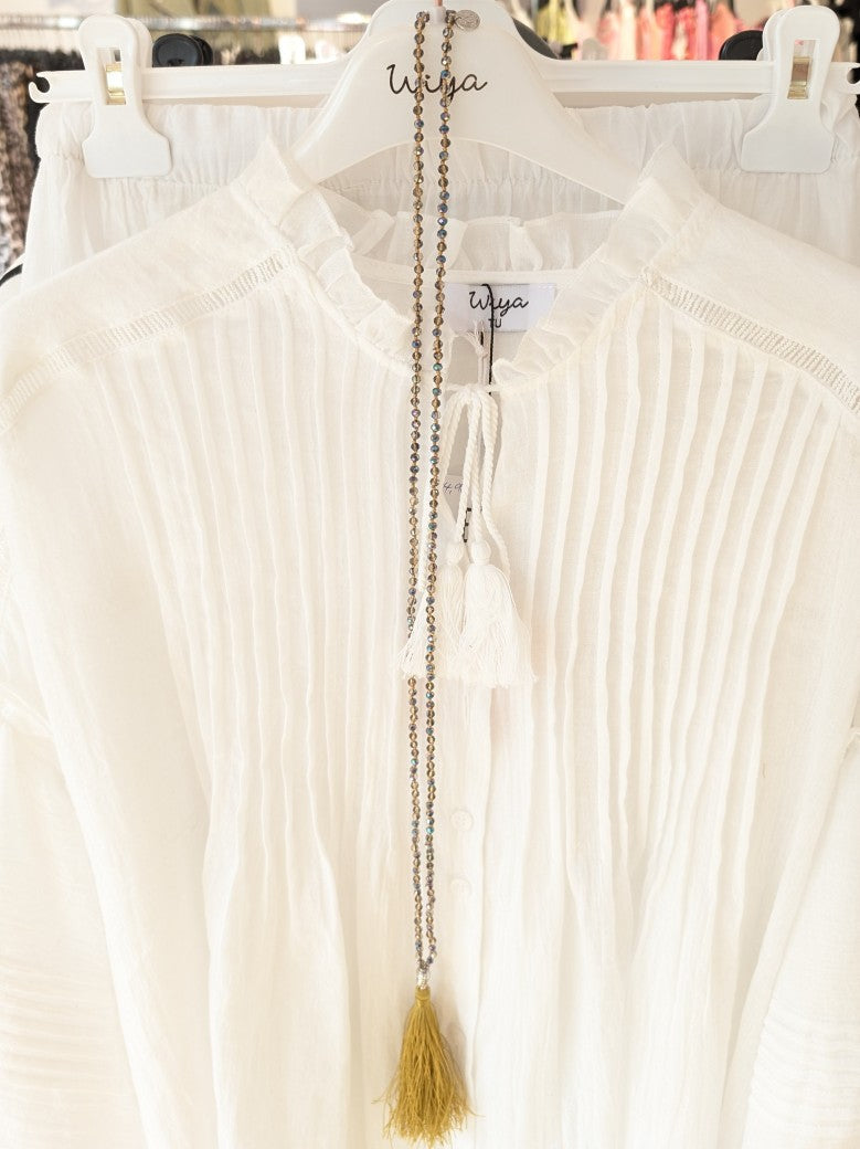 Kette Boho Edelstahl mit Kristallsteinen Buddha Kopf 90cm lang in Gold/Türkis mit Quast SSt Bijoux 8112591