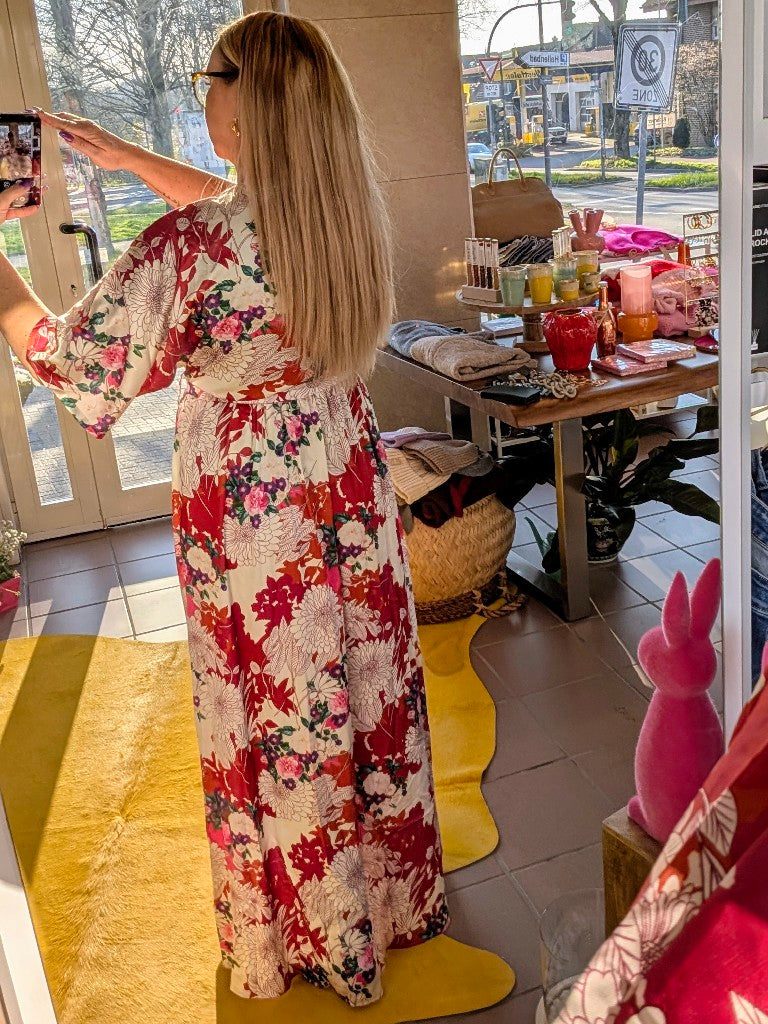 Kleid Maxi Floral Rot Fuchsia Maxi mit 3/4 Arm - von Lily Mcbee R08829 Style 606388