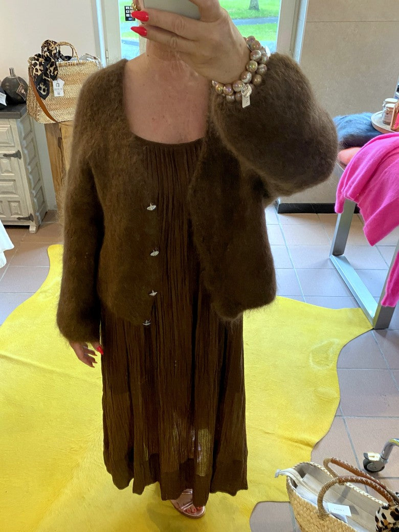 Kleid Maxi Tencel Lyocell und Viskose Rayon mit Trägern Braun, One Size - von WIYA 2508 K0198