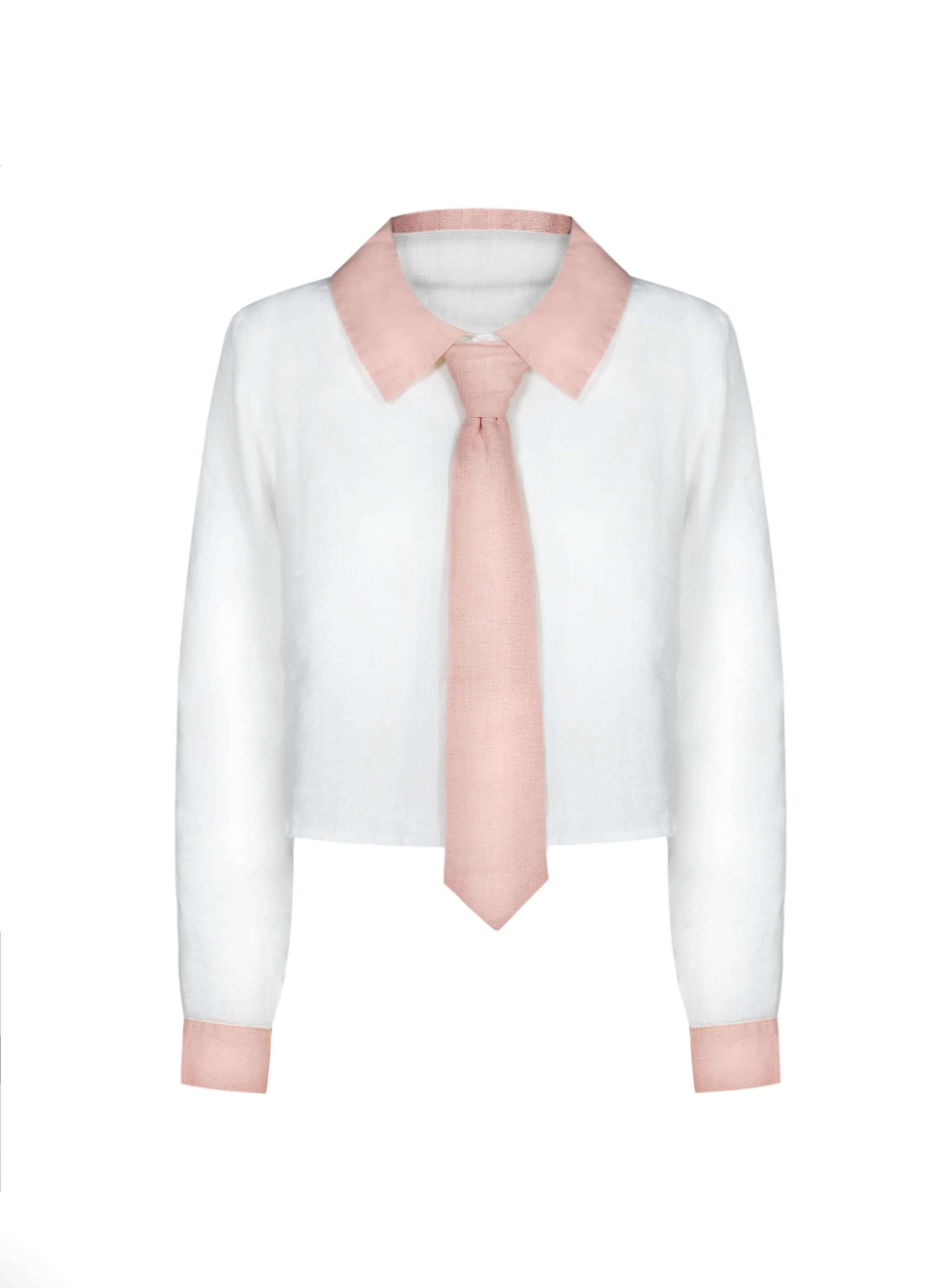 Attachable Tie: Our innovative technique allows you to style the ready-to-wear tie at any time. Simply hang it on the hidden buttons under the collar.