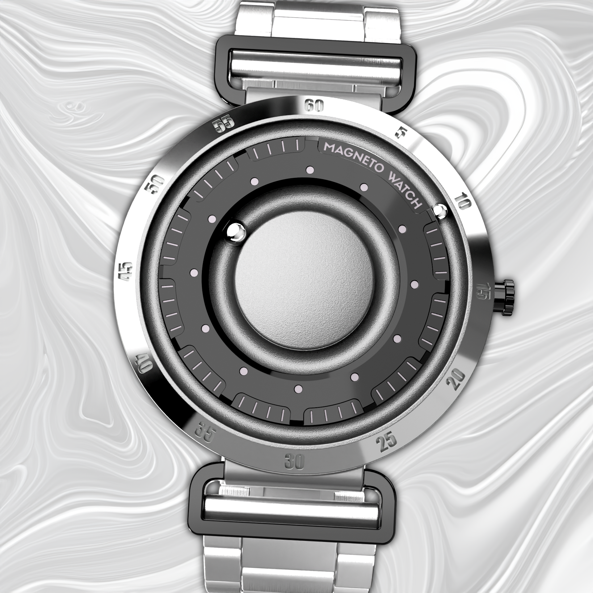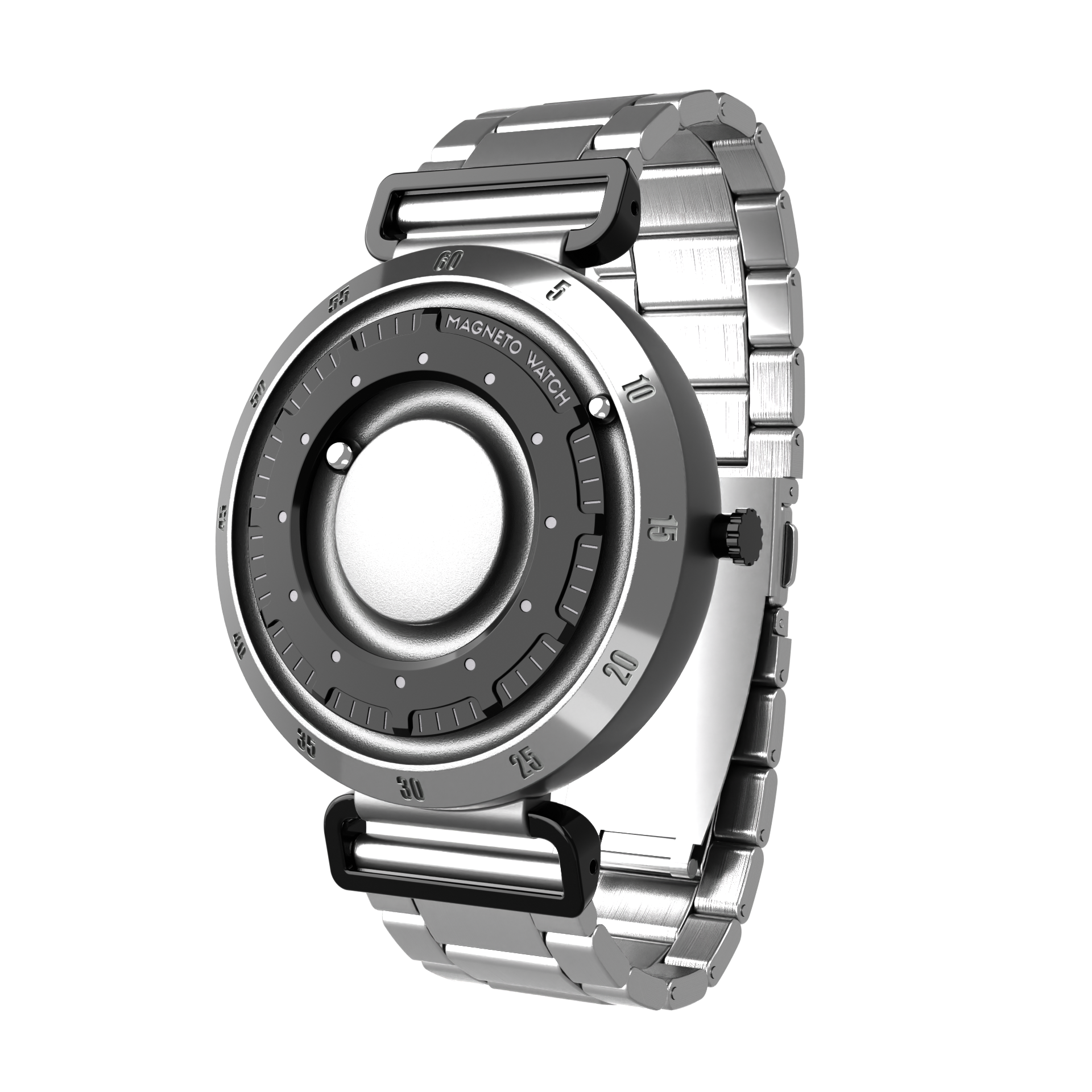 Die Magneto Nexus Titan vereint modernes Design mit minimalistischer Raffinesse. Ihr teilweise glänzendes Gehäuse aus hochwertiger Alloy und die innovative Magnetzeiger-Technik machen diese Uhr zu einem echten Blickfang. Zwei schwebende Kugeln ersetzen klassische Zeiger und verleihen der Uhr einen futuristischen Touch. Das silberfarbene Glieder-Edelstahlarmband und Faltschließe bietet Komfort und Stil in Perfektion. Gehäusedurchmesser: 43 mm, Gehäusehöhe: 12 mm. Die perfekte Wahl für alle, die Eleganz und Innovation lieben und ein Statement setzen möchten.