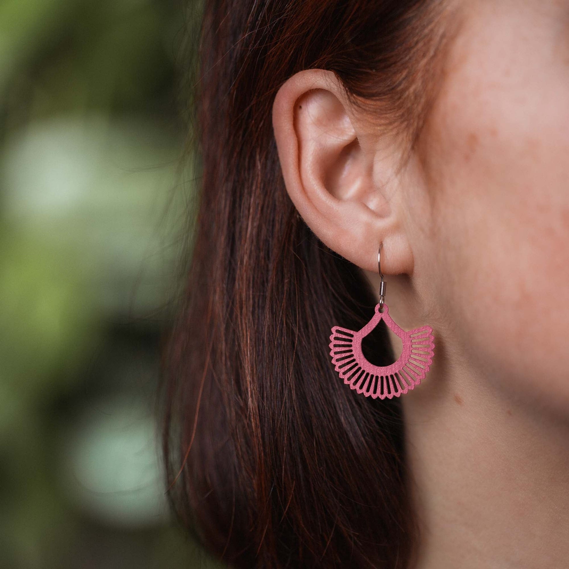 Aus stabilem Holz gefertigt, nur 1 mm dünn – federleicht und angenehm zu tragen. Die antiallergenen Edelstahlstecker kannst du in Silber, Gold oder Rosé-Gold wählen. Auch beim Anhänger stehen dir sechs Farben zur Auswahl, passend zu deinem Stil. Designed mit Liebe zum Detail – für deinen natürlichen Look oder als besonderes Geschenk.