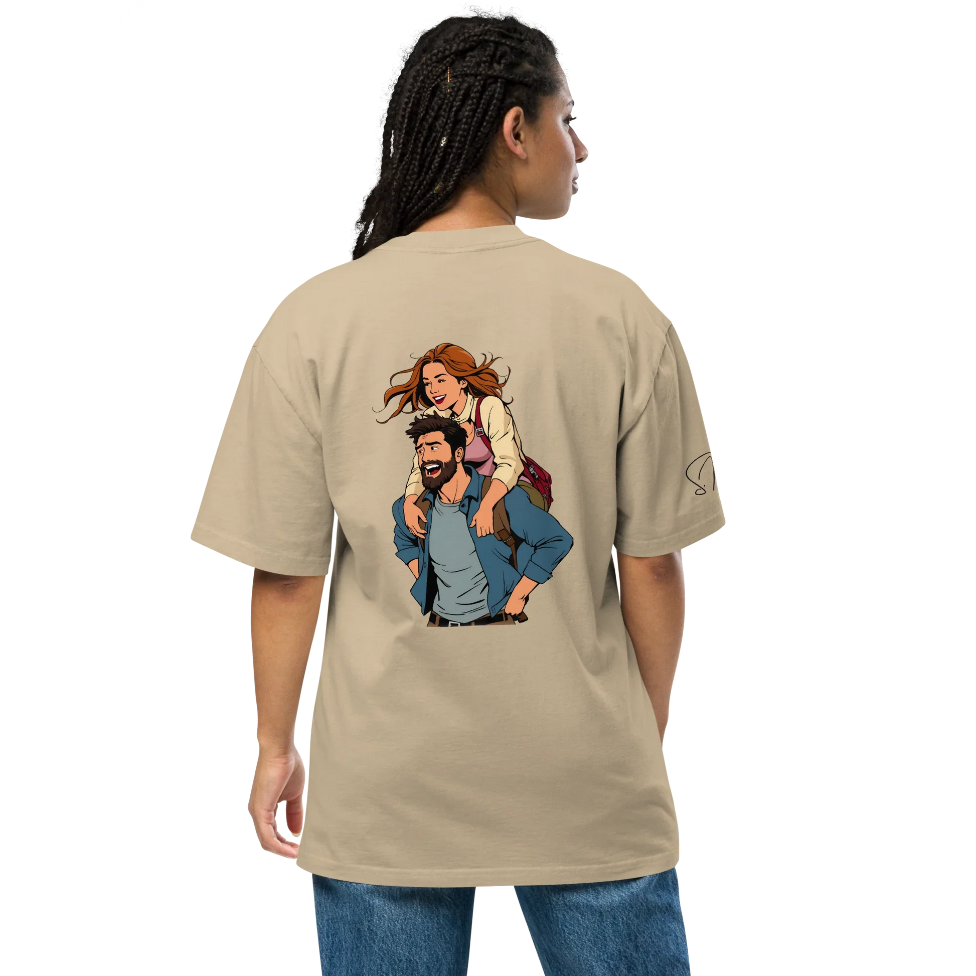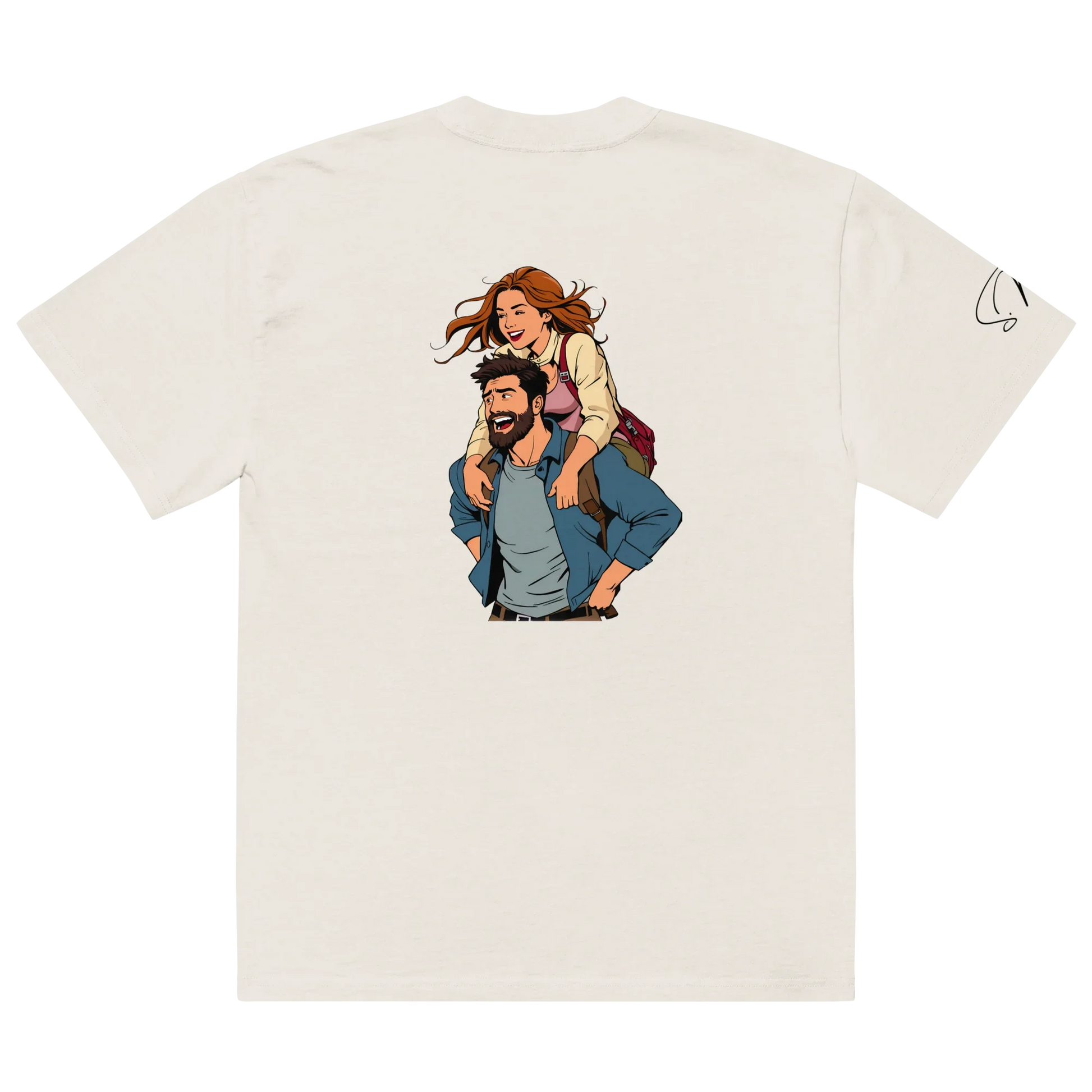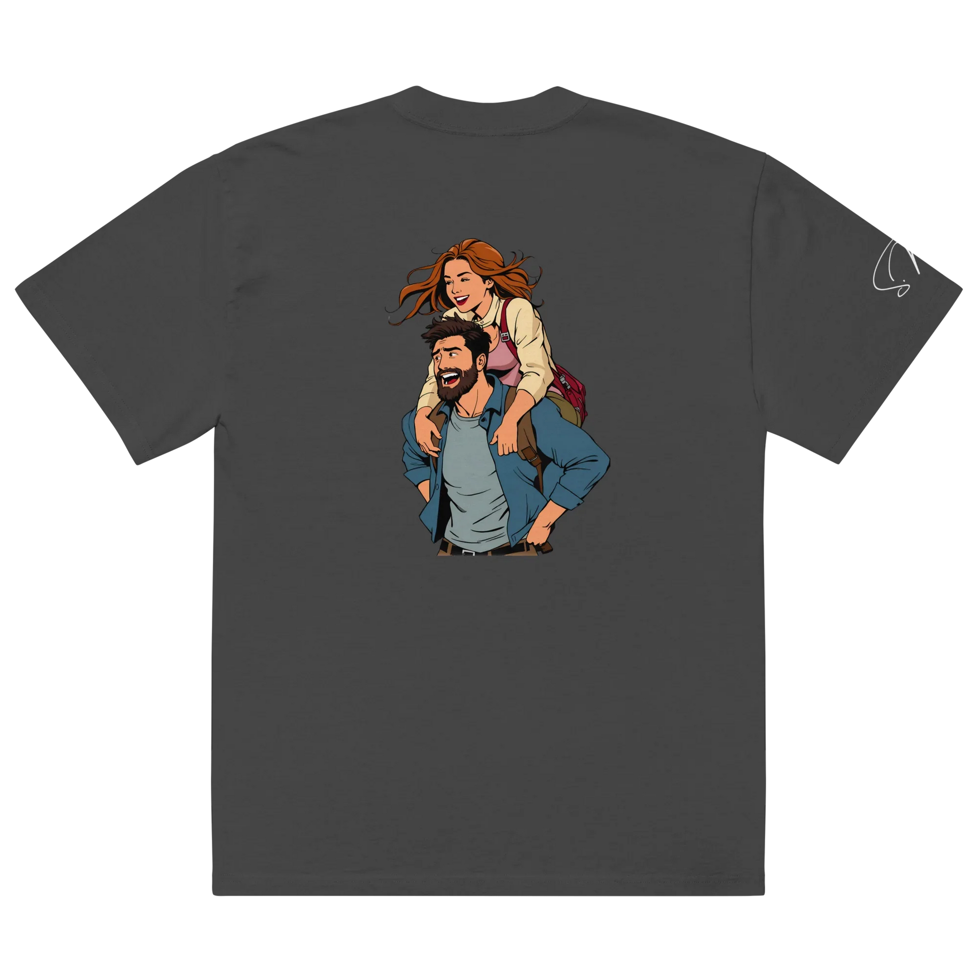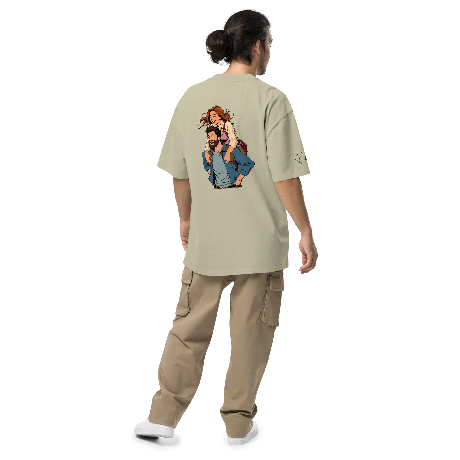 Oversized T-Shirt "huckepack" – für alle, die wissen: Im Leben trägt man nicht nur Verantwortung, sondern manchmal auch einfach die bessere Hälfte durch den Alltag – und das mit einer Extraportion Humor. Das Motiv? Ein Mann, der seine Partnerin Huckepack trägt, weil echte Liebe eben nicht nach Rosen duftet, sondern manchmal nach Muskelkater und schiefem Grinsen aussieht. Dieses Shirt ist so groß und bequem, dass du locker noch jemanden mit reinpacken könntest – oder einfach nur deine ganzen Alltagsprobleme. Perfekt für alle, die Teamwork feiern, aber trotzdem nicht auf ihren eigenen Style verzichten wollen. Also: Shirt an, Huckepack-Gefühl raus in die Welt und allen zeigen, dass Zusammenhalt nicht immer romantisch, aber immer ziemlich witzig sein kann! (Für Rückenschmerzen wird keine Haftung übernommen!)