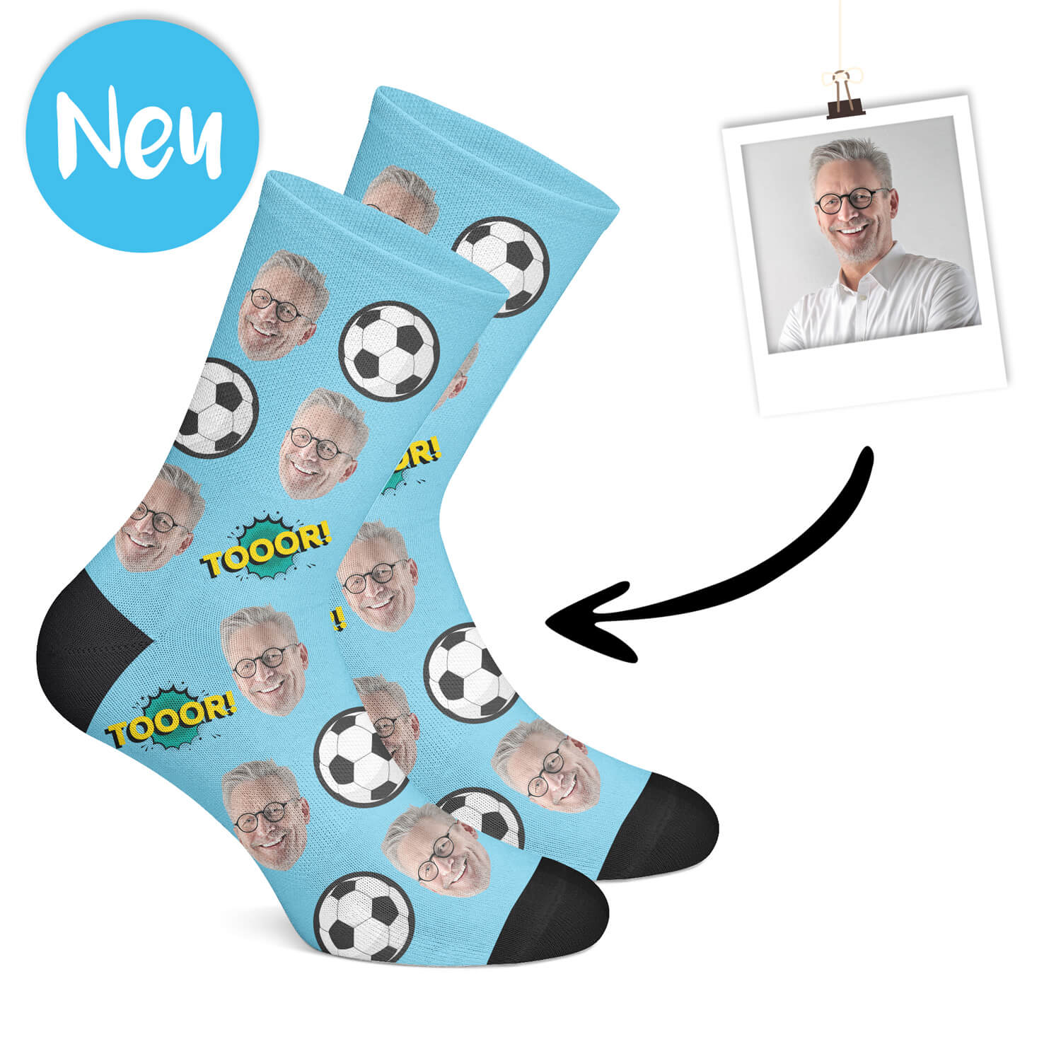 Dann sind unsere personalisierten Socken im Fußball Design, die mit Deinem Foto bedruckt werden, perfekt für Dich!