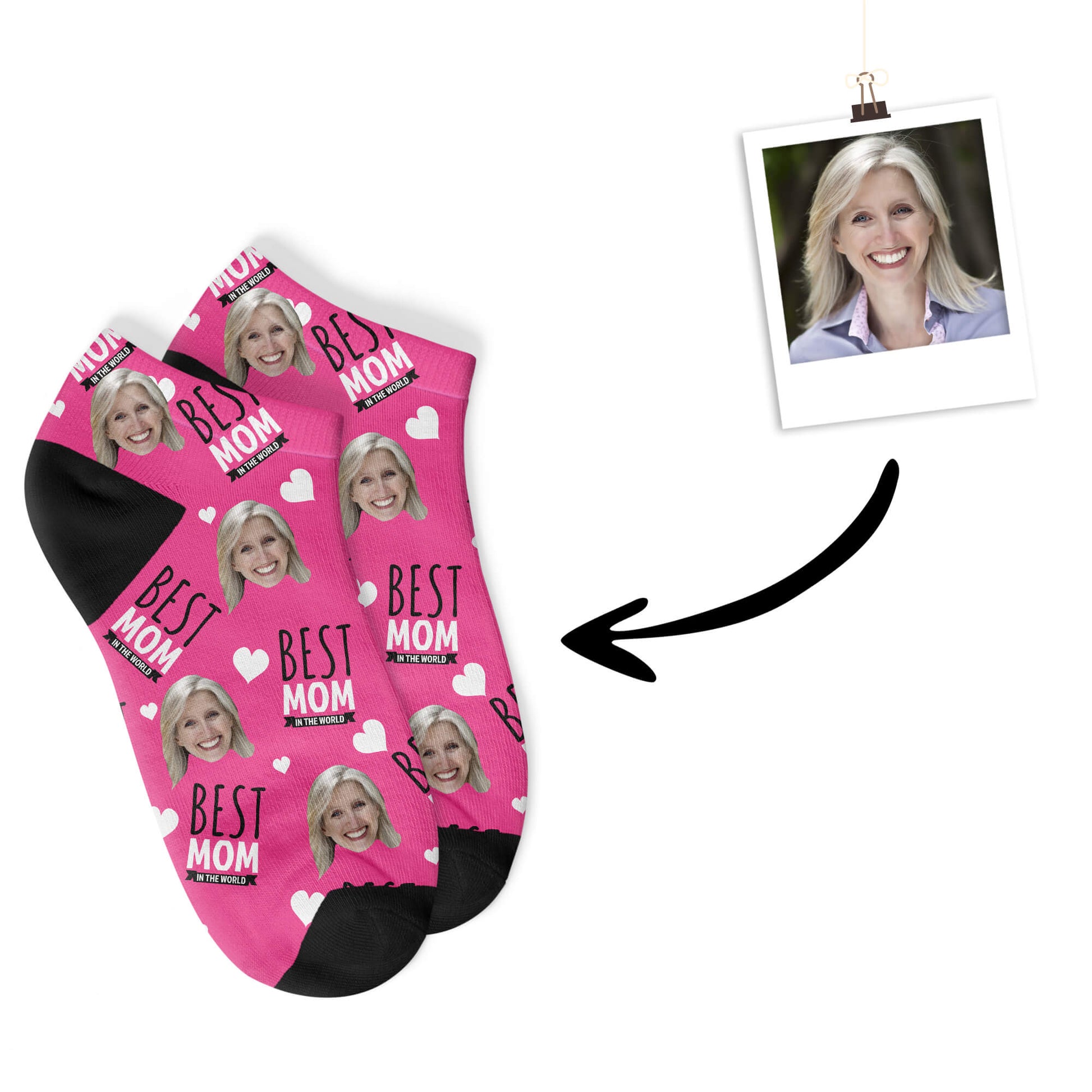 Dann sind unsere personalisierten Sneakersocken im Best Mom Design, die mit Deinem Foto bedruckt werden, perfekt für Dich!