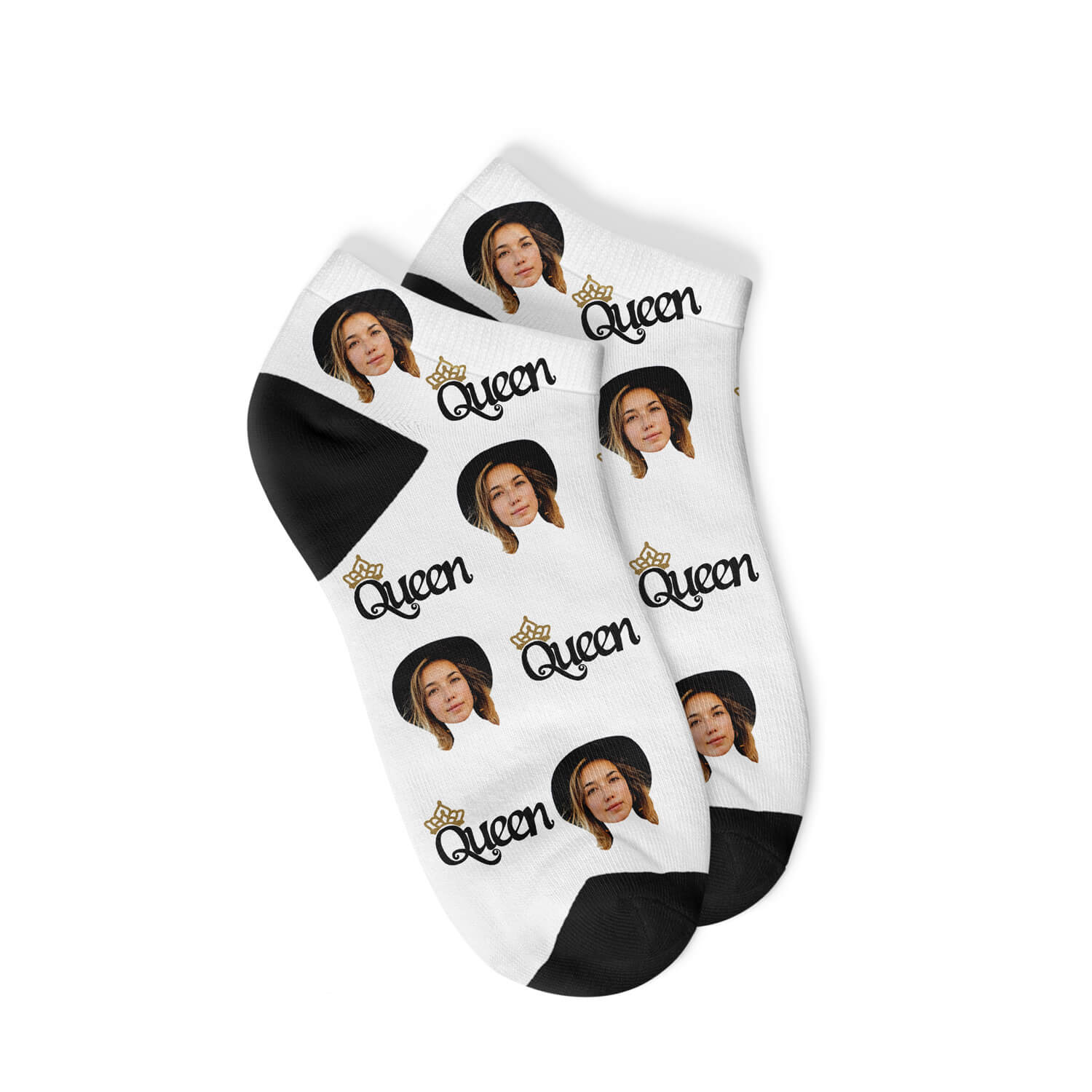 Dann sind unsere personalisierten Sneakersocken im Queen Design, die mit Deinem Foto bedruckt werden, perfekt für Dich! Passend zu den Queen Socken, gibt es auch die King Socken.