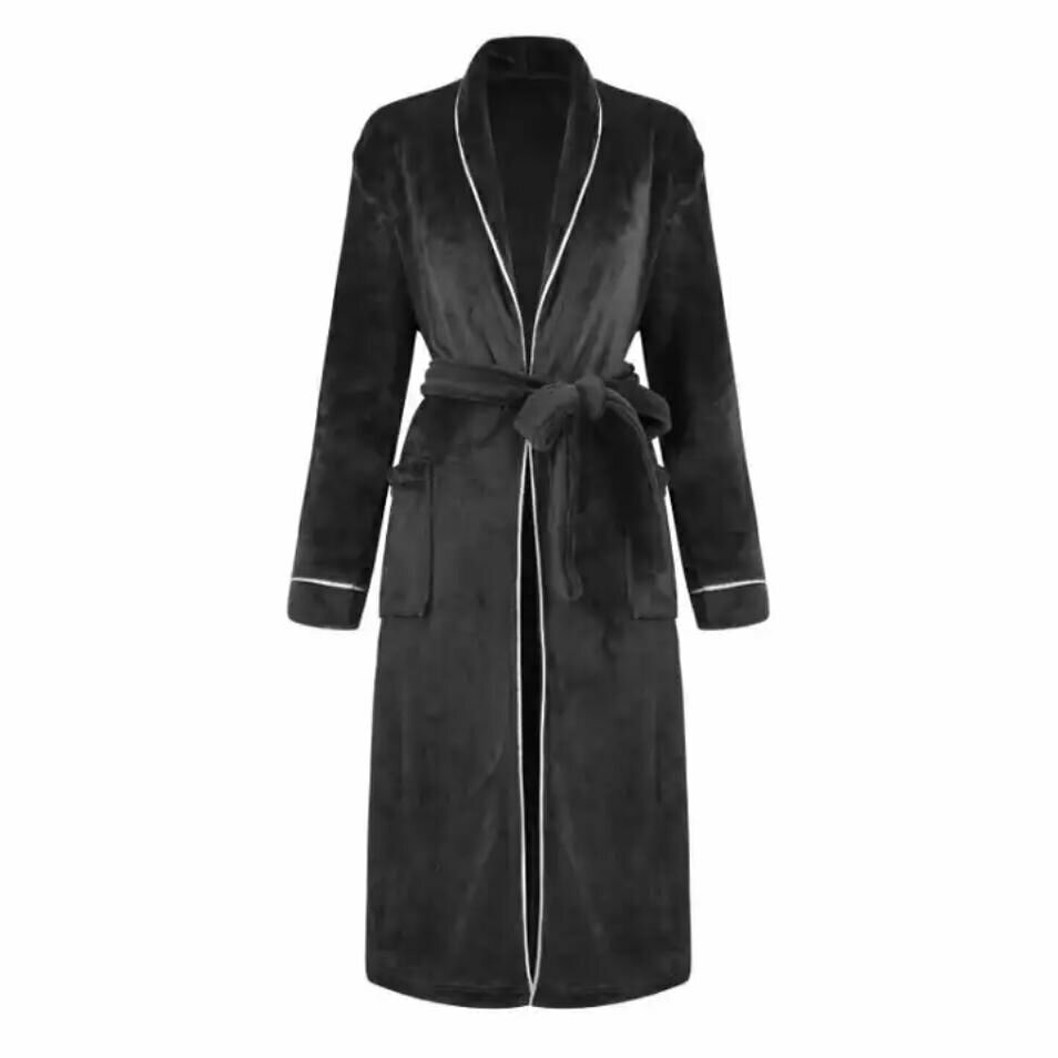 Premium Bademantel » Saunamantel Teddy-Plüsch » Morgenmantel schwarz mit weißem Rand