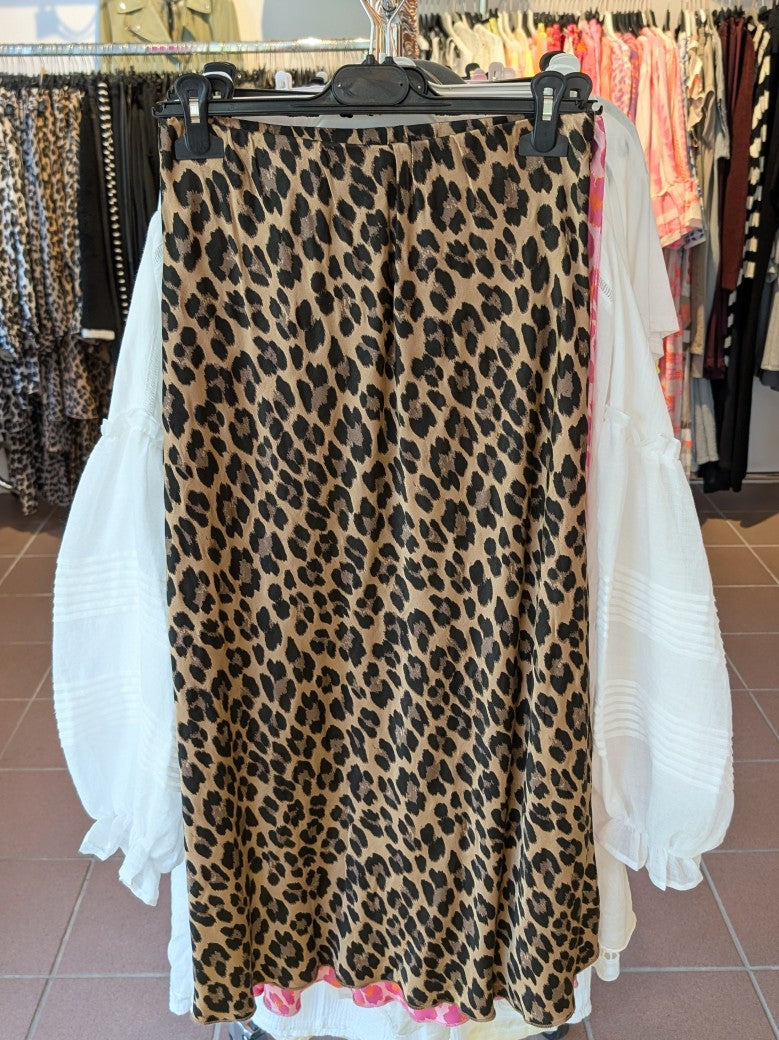 Rock Viskose Satin mit Leo Muster in Beige Braun Gold Schwarz, One Size 02691