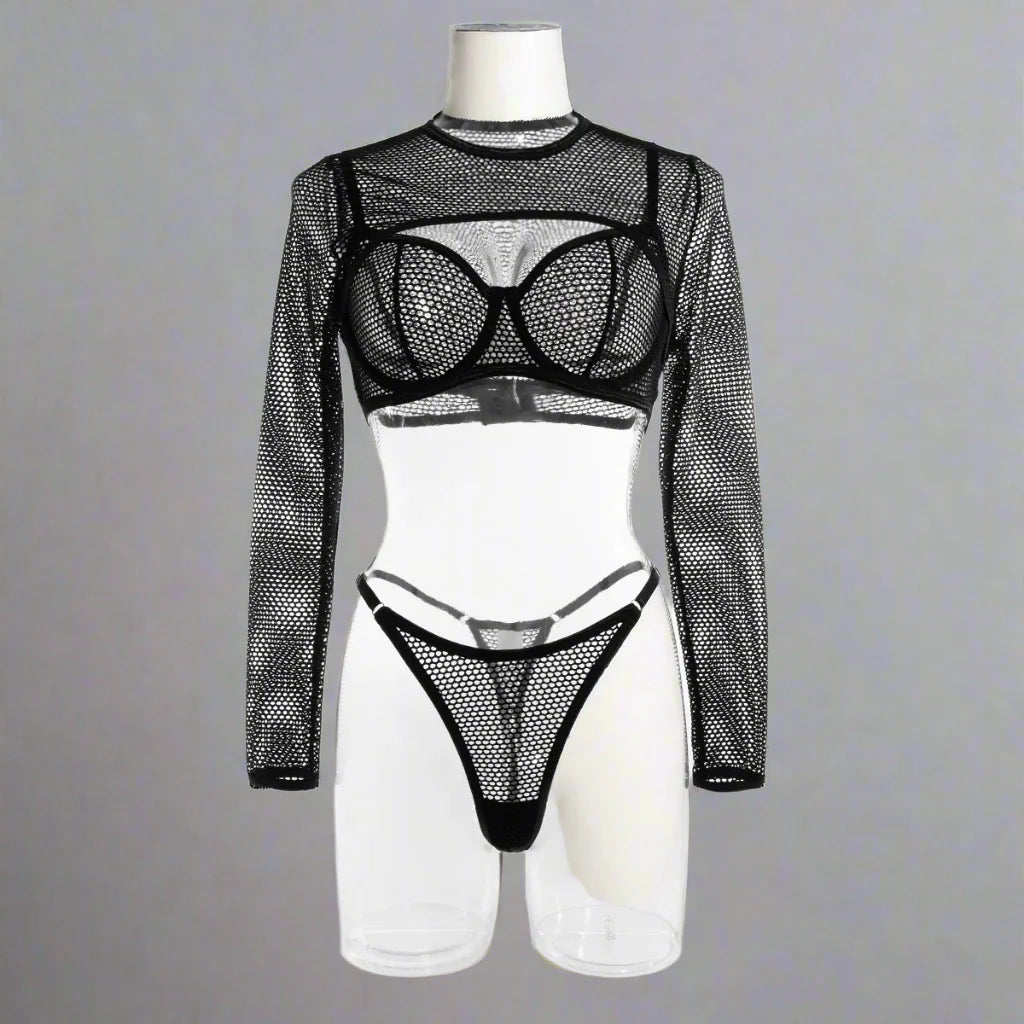 Das Sensual See Through Set von Pole lädt dich ein, deine sinnlichste Seite zu entdecken. Hergestellt aus hochwertigem Netzstoff, bietet dieses Set einen verlockenden Look und ein angenehmes Tragegefühl. Der String, das Crop Top und der BH ergänzen sich perfekt und betonen deine Kurven auf verführerische Weise.