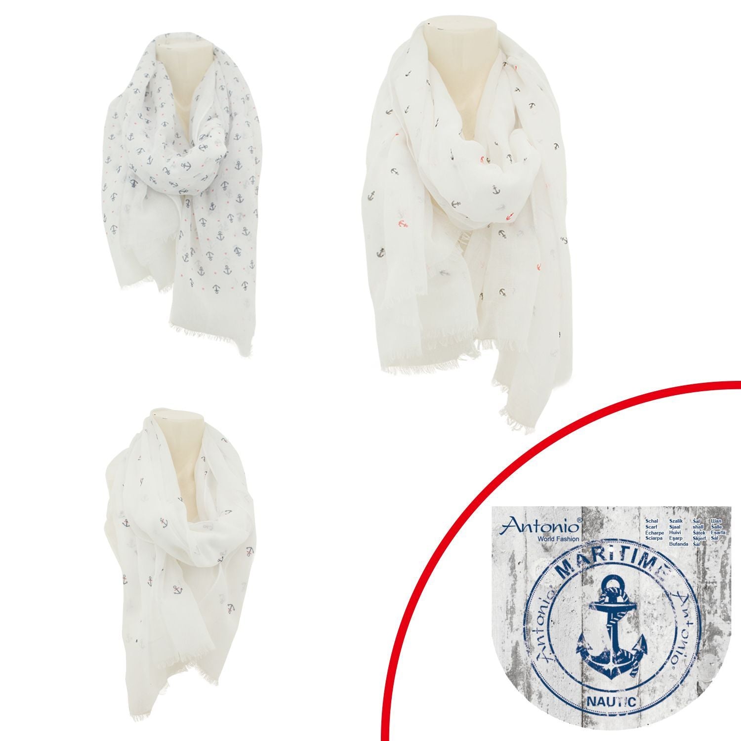 Sommer Damen Schal » Maritimes Design » leichter Sommerschal 180 x 70 cm » Halstuch weiß mit Ankern » Damenschal weich & dünn