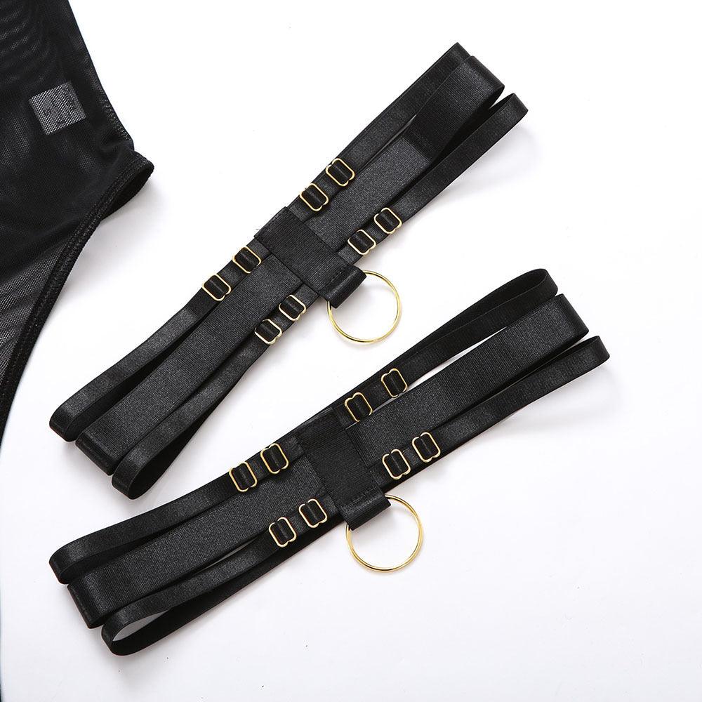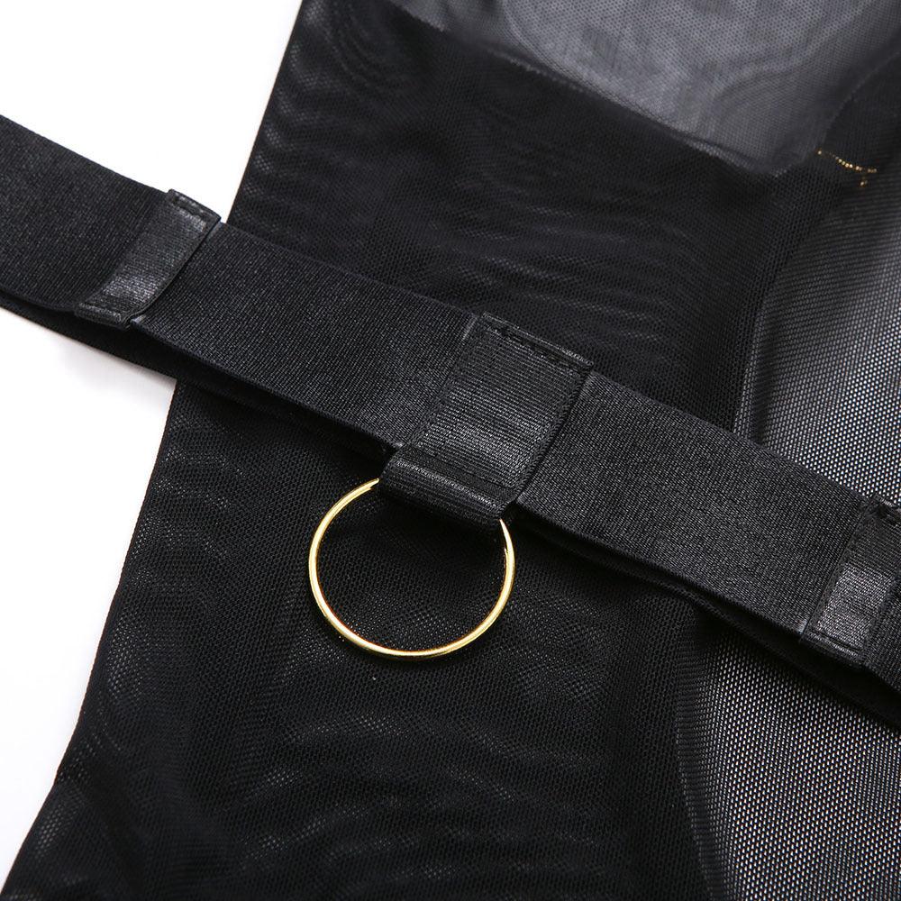 Der Thong-580 Bodysuit ist eine stilvolle Mischung aus verführerischer Spitze, Leinen und Mesh. Mit goldenen Ringdetails und einem Mesh-Rücken, der für eine sinnliche Silhouette sorgt, ist dieser Bodysuit ein wahres Meisterwerk der modernen Mode. Perfekt für diejenigen, die den Schritt ins Unbekannte wagen und ihre selbstbewusste Seite zeigen möchten.