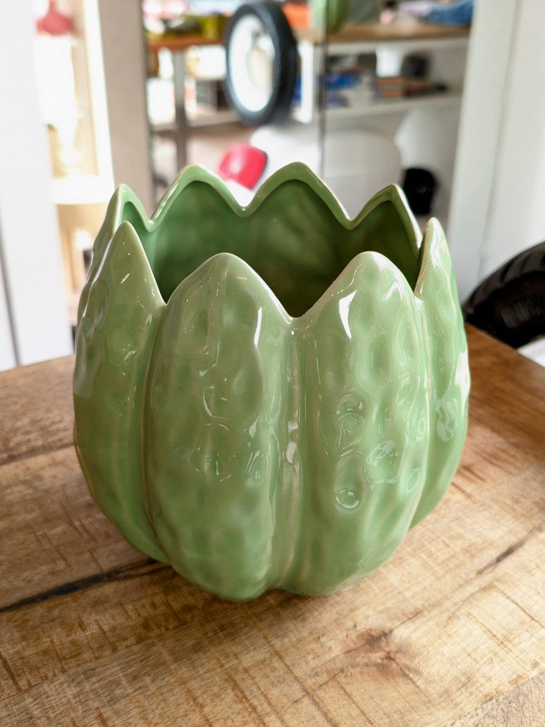 Übertopf Steingut Tulpenform grün ca. 17,5cm x 17,5cm, Öffnung ca. 12/13cm - COUNTRYFIELD